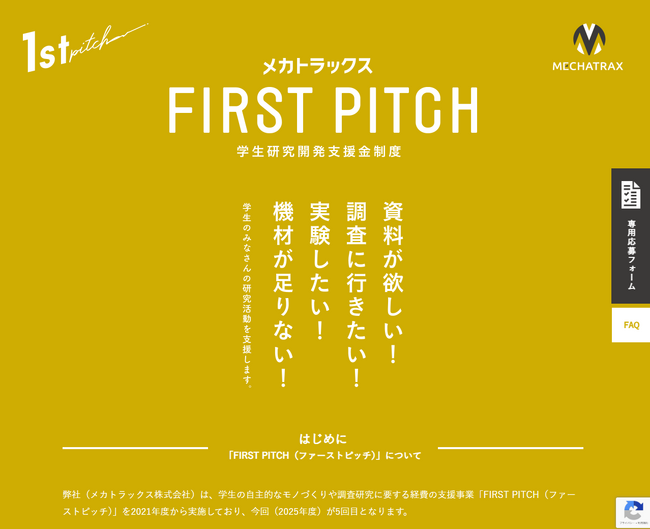 2025年度「FIRST PITCH」Webサイト( https://mechatrax.com/first_pitch_2025/ )