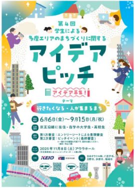 京王電鉄株式会社(本社:東京都多摩市、取締役社長:都村 智史、以下「京王電鉄」)、独立行政法人都市再生機構東日本賃貸住宅本部(所在地:東京都新宿区、本部長:井添 清治、以下「UR都市機構」)は、「第4回 学生による多摩エリア※1のまちづくりに関するアイデアピッチ※2」を開催します。