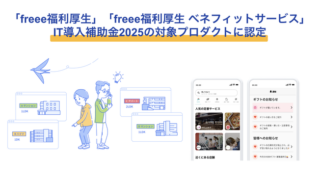 フリー株式会社(本社:東京都品川区、CEO:佐々木大輔、以下「freee」)の提供する「freee福利厚生」「freee福利厚生 ベネフィットサービス」はIT導入補助金2025の対象プロダクトに認定されたことをお知らせします。