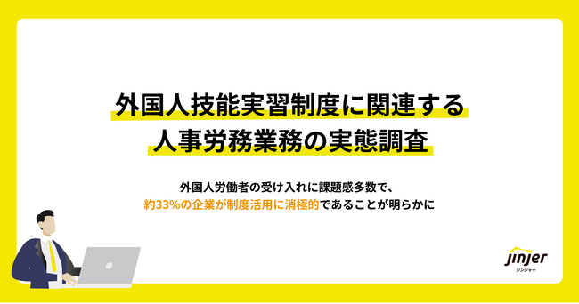 クラウド型人事労務システム「ジンジャー」を提供しているjinjer株式会社(本社:東京都新宿区 代表取締役社長CEO:冨永 健 以下、jinjer)は、従業員101名以上の、特定業種における企業の人事・労務担当者、経営層、管理の計347名を対象に「外国人技能実習制度に関連する人事労務業務の実態」に関する調査を実施しました。