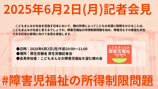 [記者会見のお知らせ~障害児福祉の所得制限問題について~] [こどもまんなか障害児福祉を望む親の会(NPO法人サードプレイス)]主催、[2025年6月2日(月)]開催