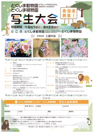 【徳島市】とくしま動物園 STELLA PRESCHOOL ANIMAL KINGDOM・とくしま植物園 写生大会参加者募集!
