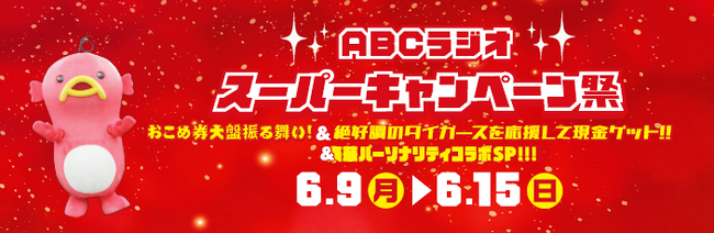 6月9日(月)~15日(日)の1週間、『ABCラジオ スーパーキャンペーン祭(まつり)』を開催!ABCラジオを聴いたらおなかもお耳も満たされるスペシャルな1週間をお届けします