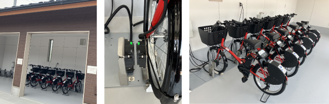 どちらも駐輪スタンドに駐輪するだけで、自動で充電が始まる。ケーブルの抜き差し操作の手間や、充電忘れの防止にもなり、サービスの向上に繋がるシステムとなっている。