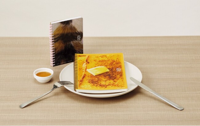 ニス加工によるシズル感のある表紙に仕上げることで、ふわふわのパンのようなやわらかさを感じられるソフトリングノートです。「フレンチトースト」「メロンパン」「食パン」「フルーツサンド」「ワッフル」の5柄をラインアップしています。<ぷにぷに子ねこ>よりも1サイズ大きいA5サイズで、ソフトリングの色はそれぞれのパン生地をイメージしています。日付欄や裏表紙にもパンがあしらわれており、開いていても閉じていても可愛い仕掛けになっています。