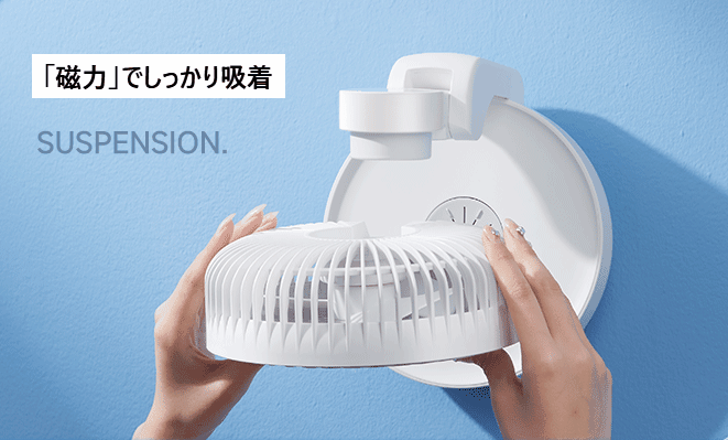 ファンが磁力でふわりと浮きながら回転する独自構造により、摩擦を最小限に抑え、驚くほど静かな運転音を実現しました。