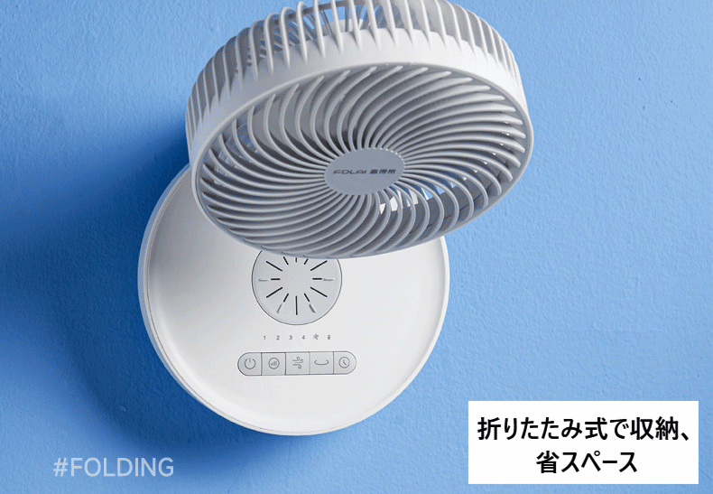 FDLAI扇風機は、スタンドでデスクに置いて使うのはもちろん、付属のパーツで壁に掛けることも可能な2WAY設計。リビングの棚やキッチンの壁、ベッドサイドなど、場所を選ばずスッキリ設置。