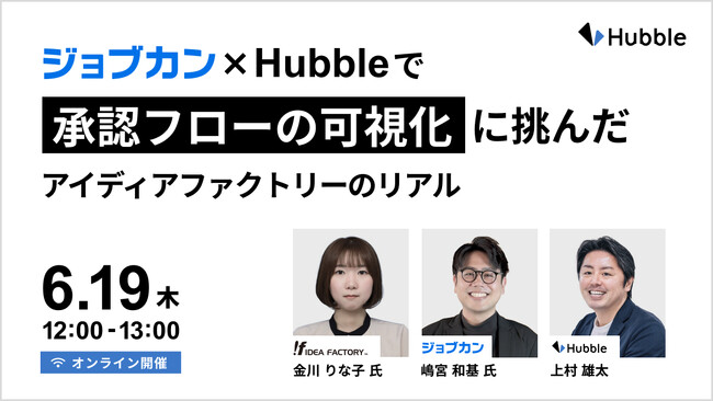契約業務・管理クラウドサービス「Hubble(ハブル)」を提供する株式会社Hubble(東京都渋谷区、CEO:早川 晋平)は、2025年6月19日(木)に、オンラインセミナー「ジョブカン × Hubbleで承認フローの可視化に挑んだアイディアファクトリーのリアル」を開催します。
