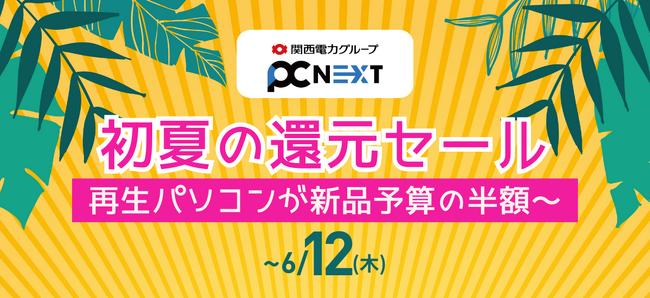 関西電力グループの株式会社ポンデテック(本社:大阪府大阪市、代表取締役:財津和也)は、公式通販サイト「PC next」にて、2025年6月5日(木)~6月12日(木)の8日間、「初夏の還元セール」を開催します。