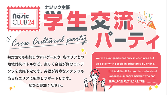 株式会社学生情報センター(京都府京都市、代表取締役社長 吉野一樹、以下 、ナジック)は、ナジックが管理する学生マンションなどの入居学生を対象として、ご好評をいただいているイベント「学生交流パーティ」を2025年5月25日(日)に開催しました。当日は、渋谷・池袋・名古屋・大阪・京都・福岡の計6会場をオンラインでつなぎ、地域を超えた学生同士の交流を実現させ、留学生を含めた計125名の学生が参加しました。