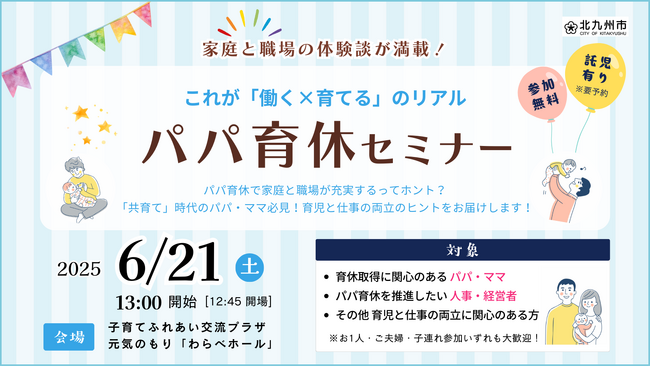 参加無料【パパ育休セミナー】これが「働く×育てる」のリアル in北九州市 6/21(土)開催決定!