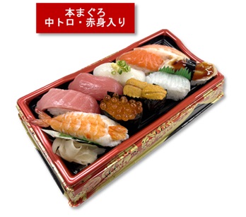 脂肪が少なくさっぱりとした味わいが特長の本まぐろ赤身といかやサーモン、いくらなど、お子さまから大人まで幅広い世代に人気のネタをお手頃価格で楽しめる握り盛合わせです。