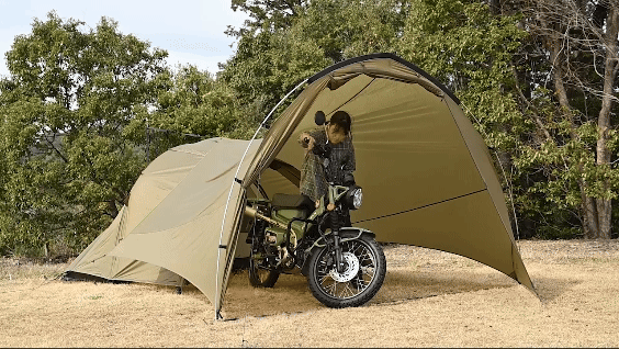 クラウドファンディングにて目標金額の450%超!原付収納もOK!大型テントに対応した“MID”でソロサイトに広大な前室空間をプラス