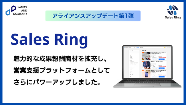 営業支援プラットフォーム「Sales Ring」を運営するインプレックスアンドカンパニー株式会社(本社:東京都港区、代表取締役:伊藤 勝成、以下 当社)は、パートナーサクセス株式会社(本社:東京都港区、代表取締役:永田 雅裕)との戦略的業務提携を締結し、本日より「Sales Ring」の機能を大幅にアップデートしたことをお知らせします。