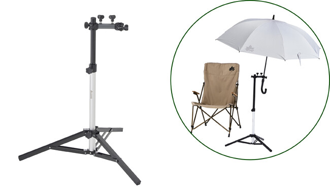 手ぶらで自分だけの日陰を独り占めできる日傘自立スタンド「チェアサイド日傘スタンド」をキャンプや公園など様々なアウトドアシーンで、ぜひともご活用ください。