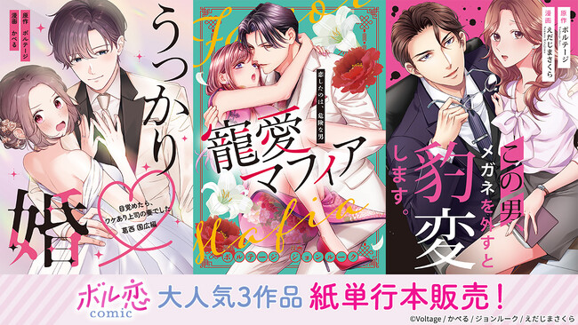 オトナ女子向けコミックレーベル「ボル恋comic」「うっかり婚」 「寵愛マフィア」「豹変メガネ」人気3作品が紙単行本化!6月18日(水)よりボルフェス2025会場にて販売
