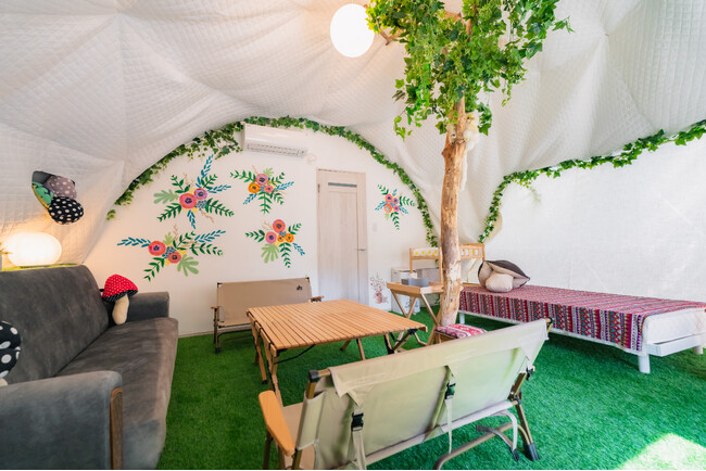 「冷房完備」のドーム型グランピングテントなら、真夏のバーベキューもストレスフリー!