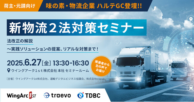 ウイングアーク1st株式会社は、荷主・元請向けに、2025年4月に施行された新物流2法の改正に伴う具体的な義務化内容を解説し、物流業界が直面する課題に対する実践ソリューションを提案するセミナーを6月27日(金)に開催します。