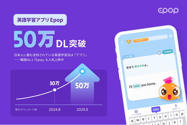 日本人が選ぶ・英語学習法1位は「英語学習アプリ」|韓国No.1英語学習アプリ『Epop』、日本で50万ダウンロード突破!