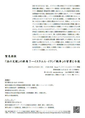 緊急鼎談 「法の支配」の終焉?──イスラエル・イラン「戦争」の背景と今後 開催のお知らせ