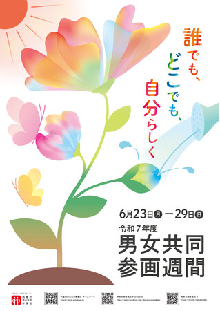 「男女共同参画社会基本法」の公布・施行日である平成11年6月23日にちなみ、毎年6月23日から29日までの1週間を「男女共同参画週間」として、全国各地で男女共同参画社会基本法の目的や基本理念について理解を深めるさまざまな取り組みを行っています。