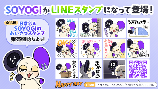 『HAPPY RAT』の人気キャラクター「SOYOGI(そよぎ)」がLINEスタンプで登場!