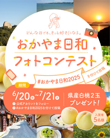 このフォトコンテストでは、県民の皆さまや岡山を訪れた方が見つけた “おかやま日和を感じる瞬間”を、写真で切り取ってInstagramに投稿いただきます。