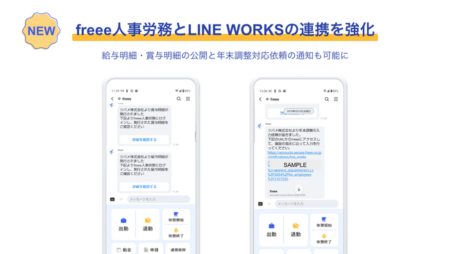 フリー株式会社(本社:東京都品川区、CEO:佐々木大輔、以下「freee」)は、freee人事労務とLINE WORKS株式会社(本社:東京都渋谷区、代表取締役社長:島岡岳史、以下「LINE WORKS」)が提供するLINE WORKSの連携をアップデートしたことをお知らせします。