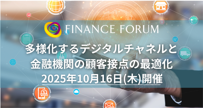 株式会社セミナーインフォ(本社:東京都千代田区 代表:小西 亘)は、2025年10月16日(木)にFINANCE FORUM「多様化するデジタルチャネルと金融機関の顧客接点の最適化」を開催することとなりました。