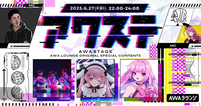 AWA株式会社(本社:東京都港区、代表取締役CEO:冨樫晃己)が運営する、サブスクリプション型(定額制)音楽ストリーミングサービス「AWA(アワ)」は、2025年6月27日(金) 22:00より、無料で誰でも参加できるオンライン空間「ラウンジ」で、ネットシーンを中心とした注目アーティストなどを毎回ゲストに招き、有識者であるMCとともにシーンの次のステージを切り開く番組「AWAステージ(通称:アワステ)」の第53回を開催いたします。