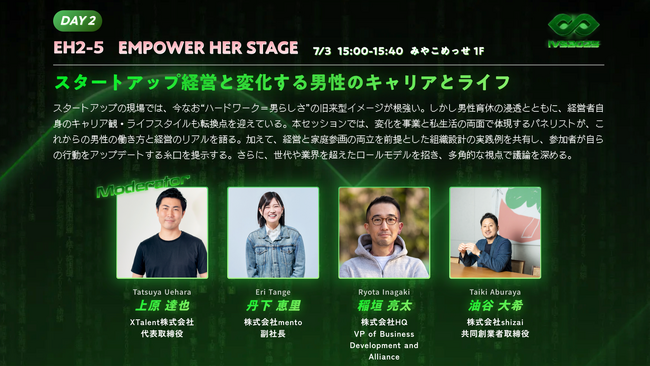 - タイトル:「スタートアップ経営と変化する男性のキャリアとライフ」- 日時:2025年7月3日(水)15:00~15:40