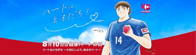 三杉淳は大人気サッカー漫画『キャプテン翼』に登場する、心臓病とともに生きるサッカー選手です。心臓の大切さを一番よく知っている三杉淳選手に、心臓病について広く国民に知ってもらうための伝道師として2023年より、「心臓病啓発アンバサダー」に就任、活躍していただいています。健康ハートの日を表す「810」のロゴを左腕につけた背番号14番のイラストは、『キャプテン翼』原作者である高橋陽一先生の描き下ろし作品です。