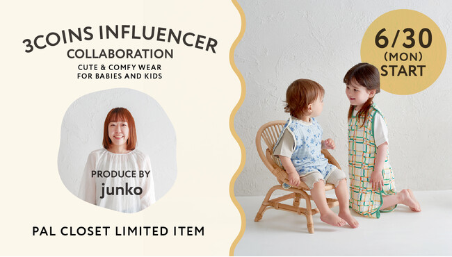 あなたの“ちょっと幸せ”をお手伝いする雑貨店「3COINS」(スリーコインズ)は、ブランドインフルエンサー「junko」(じゅんこ)が初プロデュースした子育てに役立つアイテムを6月30日(月)より公式通販サイト「PAL CLOSET」(パルクローゼット)にて限定販売します。