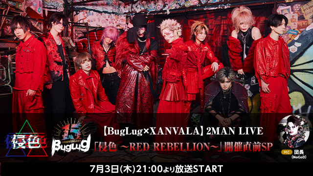 【7/3(木)21時~】BugLugがXANVALAを迎えたツアー「侵色~RED REBELLION~」の開催記念特番をニコニコ生放送で3ヶ月連続オンエア