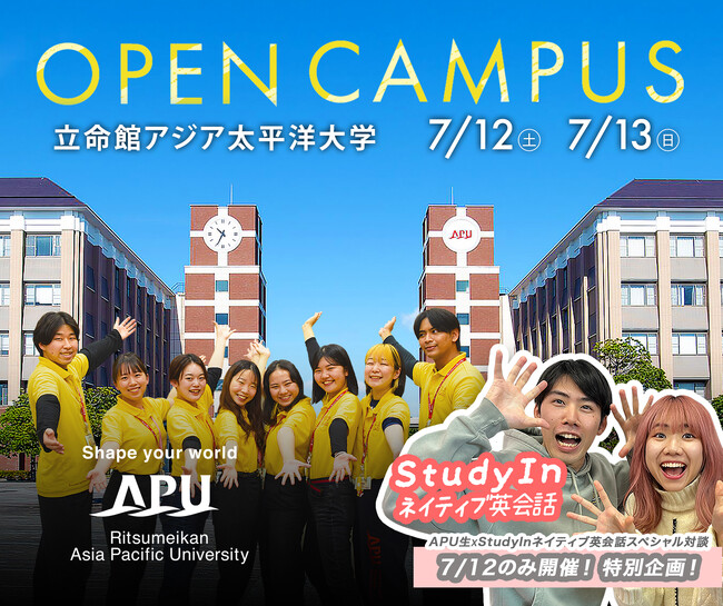 今年開学25周年を迎える立命館アジア太平洋大学(大分県別府市、学長:米山 裕、APU)は、7月12日(土)、13日(日)の2日間、オープンキャンパスを開催します。
