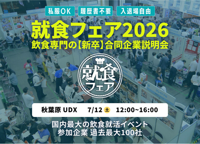 「就食フェア2026」過去最大の100社が参加!国内最大の飲食・レストラン新卒就活イベント!