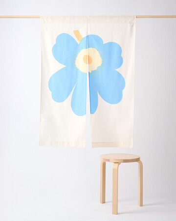 今回は、そのようなマリメッコを代表するプリント 「ウニッコ」が日本の伝統文化である暖簾にデザインされて登場します。生成りのコットンをベースに、爽やかなスカイブルーと温かなライトイエローで彩られたウニッコを中央に配置。日本家屋に馴染む落ち着いた風合いでありながら、モダンな空間にも自然と溶け込み、様々な場所でお使いいただけるアイテムです。