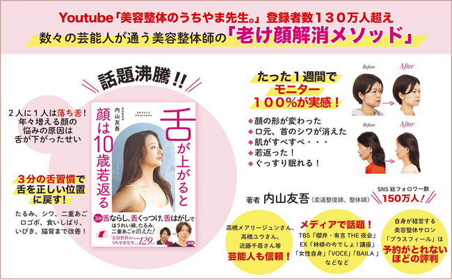【たちまち重版&著者コメント到着】高橋メアリージュンも実感メソッド!YouTube登録者数131万人・内山友吾著『舌が上がると顔は10歳若返る』が反響を受け発売後重版決定