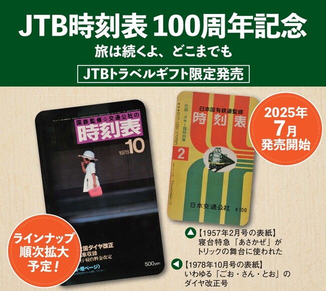 カード型JTBトラベルギフトに『JTB時刻表』100周年記念デザイン登場!鉄道ファンの方への贈り物やコレクションアイテムにも2025年7月発売開始【期間・枚数限定】