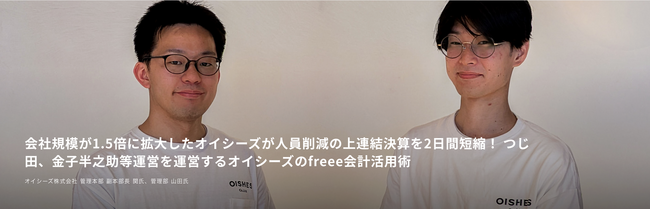 フリー株式会社(本社:東京都品川区、CEO:佐々木大輔、以下「freee」)は、「つじ田」「金子半之助」「田中そば店」などの人気ブランドを展開するオイシーズ株式会社(本社:東京都千代田区、代表取締役:工藤智、以下「オイシーズ」)のfreee会計の活用事例を公開したことをお知らせします。