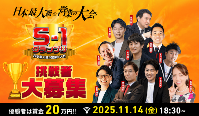 2025年11月14日(金)夕方より、営業の頂点を競う“営業エンタメイベント”『S1グランプリ2025』の開催が決定いたしました。昨年の視聴者申込数は2,000名を突破。