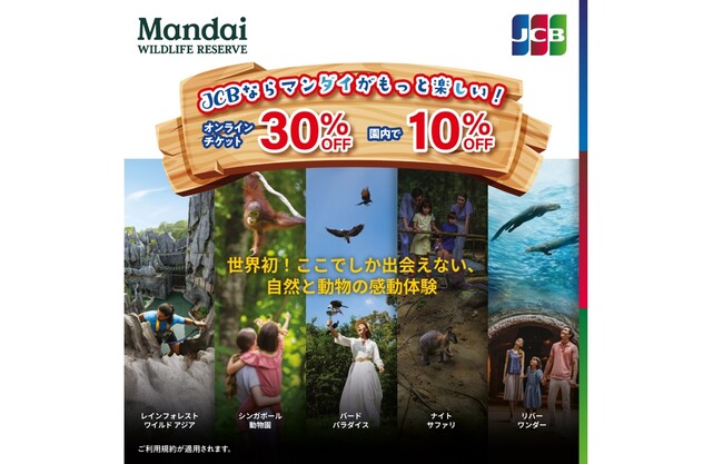 日本発唯一の国際カードブランド運営会社である株式会社ジェーシービー(本社:東京都港区、代表取締役会長兼執行役員社長:二重 孝好)の海外業務を行う子会社、株式会社ジェーシービー・インターナショナル(本社:東京都港区、代表取締役社長:陽川 勝樹)(以下、総称してJCB)は、Mandai Wildlife Groupと提携し、シンガポール旅行者向けのキャンペーンを実施します。JCBカードの決済で、シンガポールのマンダイ・ワイルドライフ・リザーブの入場チケットが30%オフ、パーク内のレストランとショップで10%オフとなるキャンペーンを実施いたします。