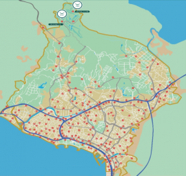 下記地図の黄色枠内エリアにて運行