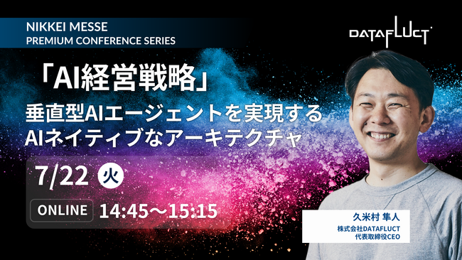 株式会社DATAFLUCT(本社所在地:東京都渋谷区、代表取締役CEO:久米村 隼人、以下「DATAFLUCT」)は、2025年7月22日(火)14:45から、日本経済新聞社が主催する「日経メッセ プレミアム・カンファレンス・シリーズ AIエージェントで実現する業務効率化の最前線」に登壇します。