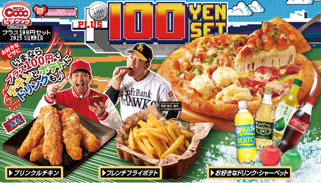 ピザクック(運営元:(株)イワタダイナース 代表:原野拓郎)は、毎年大人気の、夏のプラス100円セットを実施します。今年のプラス100円セットはチキンとポテト、さらにドリンクまたはシャーベットがついてきます。しかも、チキンは今までのフライドチキンから、食べ始めたら止まらない魔法のチキン「プリンクルチキン」にグレードアップしました!