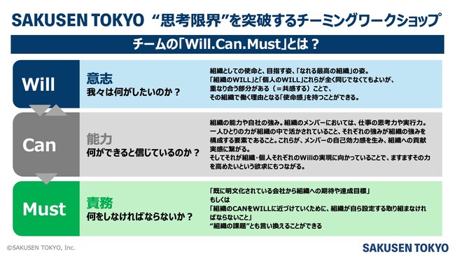 ~個人のWill/Can/Mustを起点に、チームの”思考限界”を突破するメンバー参加型ワークショップ~