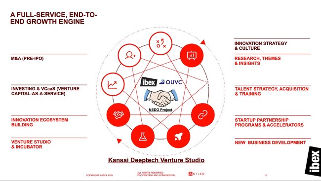 大阪大学ベンチャーキャピタル株式会社(OUVC)とAnler Ibexは、関西地域から世界に挑むディープテックスタートアップのグローバル展開を加速させるため、「Ibex Venture Studio(アイベックスベンチャースタジオ)」を立ち上げました。OUVCが有する地域トップクラスのディープテックスタートアップへのアクセスと、世界30都市で展開するAntler Ibexが持つベンチャービルディングにおける専門性、そしてグローバルネットワークを掛け合わせ、国内外でのスケールを強力に後押しします。
