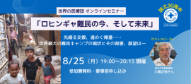 設立30周年 世界の医療団オンラインセミナー 8/25「ロヒンギャ難民の今、そして未来」開催