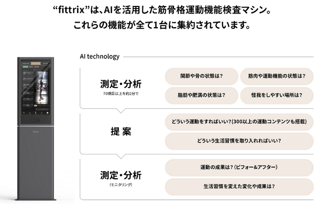 fittrixは、カラダのあらゆる部分を測定・分析。そして一人ひとりに合った運動プログラムを提案する次世代AIウェルネスマシン
