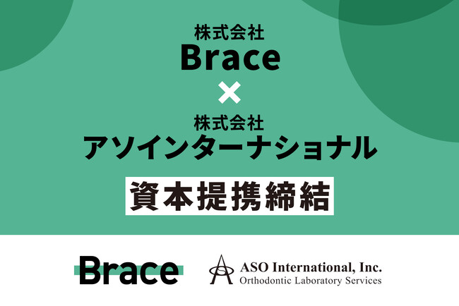 一般歯科医院向け矯正歯科治療オンラインサポートサービス「SMILE ACCESS 矯正プロパートナーズ」と矯正歯科医向けプラクティスマネジメントソフトウェア(PMS)「b-align(ビー・アライン)」を提供する株式会社Brace(本社:東京都渋谷区、代表取締役:吉住淳)は、2025年6月30日に株式会社アソインターナショナル(本社:東京都中央区、代表取締役社長:阿曽敏正、東証スタンダード上場、証券コード9340)との間で資本業務提携を締結いたしました。